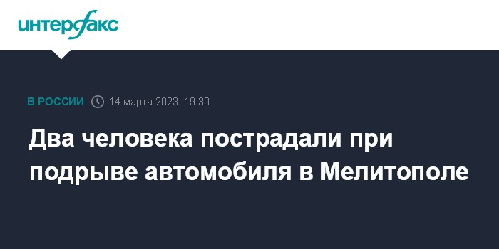 Москва. 14 марта. INTERFAX.RU - В Мелитополе Запорожской области во дворе взорвался автомобиль, пострадали два человека, сообщил журналистам представитель экстренных служб региона.