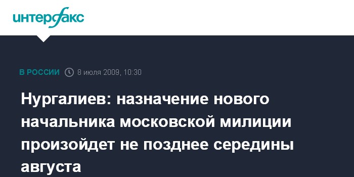 Нургалиев: назначение нового начальника московской милиции произойдет не позднее середины августа
