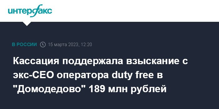 Кассация поддержала взыскание с экс-CEO оператора duty free в "Домодедово" 189 млн рублей