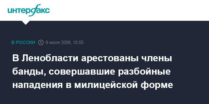 Москва. 8 июля. INTERFAX.RU - В Тихвине арестованы участники преступной группы, использовавшие форменную одежду и удостоверение правоохранительных органов, сообщает в среду пресс-служба прокуратуры Ленинградской области. По информации органов следствия, многонациональная группа, среди которых русские, азербайджанцы, армянин, применив насилие, опасное для жизни и здоровья, с использованием удостоверения сотрудника транспортной прокуратуры, переодетые в форменную одежду сотрудников ГИБДД, с целью хищения 10,5 тыс. рублей напали на потерпевшего, но вскоре были задержаны сотрудниками милиции. Задержанные подозреваются в совершении серии разбойных нападений на территории Волосовского, Кингисеппского районов Ленинградской области, а также в Псковской и Новгородской областях.