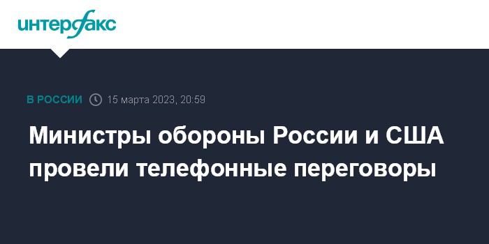 "15 марта 2023 г. по инициативе американской стороны состоялись телефонные переговоры министра обороны Российской Федерации генерала армии Сергея Шойгу и министра обороны Соединенных Штатов Америки Ллойда Остина", - сообщили в Минобороны РФ.