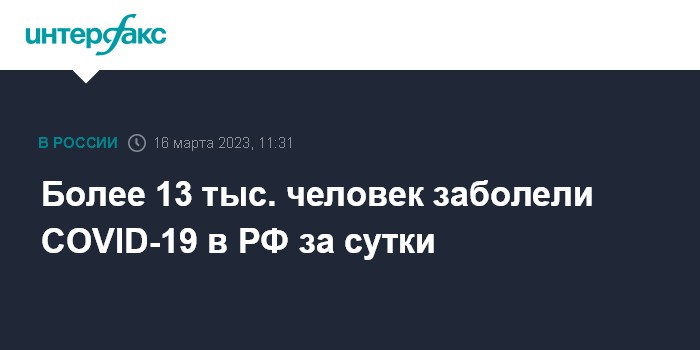 Москва. 16 марта. INTERFAX.RU - Суточный прирост новых заболевших коронавирусной инфекцией в РФ превысил 13 тыс. случаев, скончались 38 пациентов с COVID-19, следует из данных оперативного штаба, обнародованных в четверг.