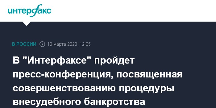 В "Интерфаксе" пройдет пресс-конференция, посвященная совершенствованию процедуры внесудебного банкротства