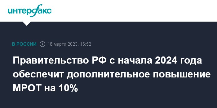 Правительство РФ с начала 2024 года обеспечит дополнительное повышение МРОТ на 10%