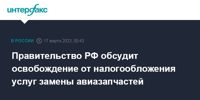 Правительство РФ обсудит освобождение от налогообложения услуг замены авиазапчастей