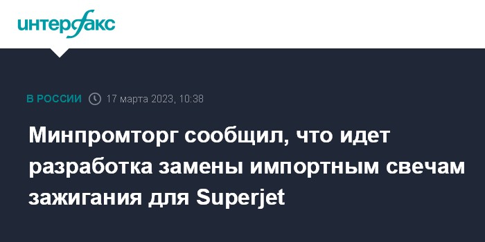 Минпромторг сообщил, что идет разработка замены импортным свечам зажигания для Superjet