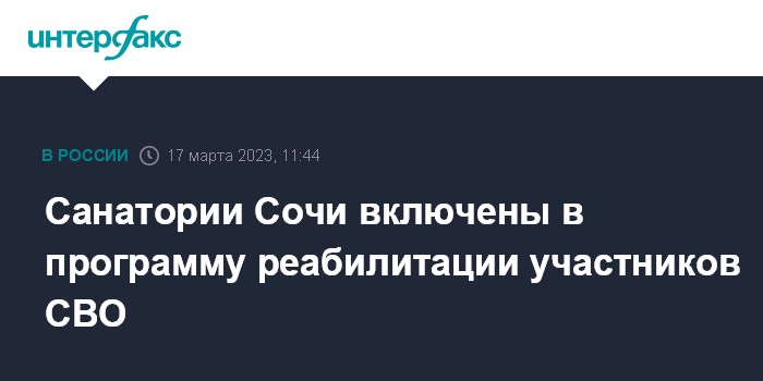 "Шесть сочинских санаториев: "Знание", "Металлург", "Роза Спрингс", "Магадан", "Электроника", "Юность" включены в региональную программу реабилитации участников СВО", - написал Копайгородский.