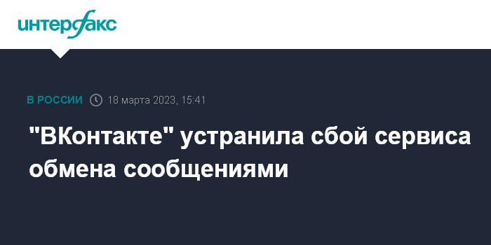 Москва. 18 марта. INTERFAX.RU - Социальная сеть "ВКонтакте" устранила сбой, из-за которого некоторые пользователи испытывали сложности с отправкой сообщений, сообщили "Интерфаксу" в субботу в пресс-службе соцсети.