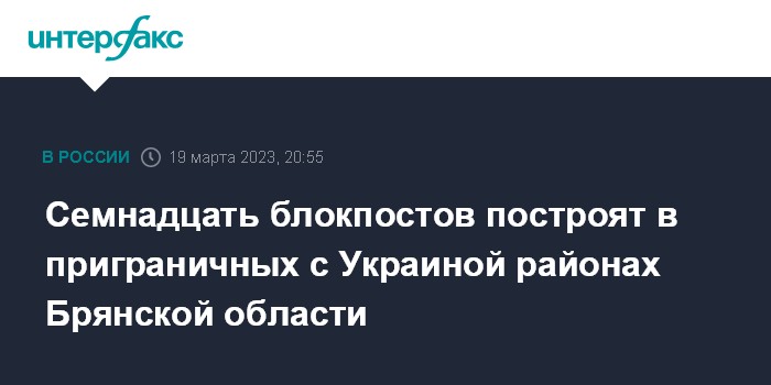 Москва. 19 марта. INTERFAX.RU - Губернатор Брянской области Александр Богомаз сообщил о строительстве в регионе 17 блокпостов.