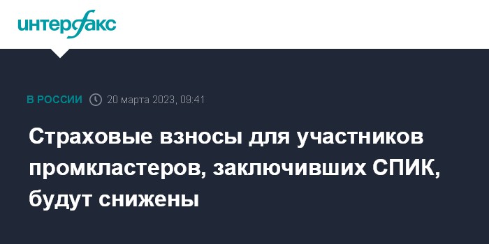 Cтраховые взносы для участников промкластеров, заключивших СПИК, будут снижены
