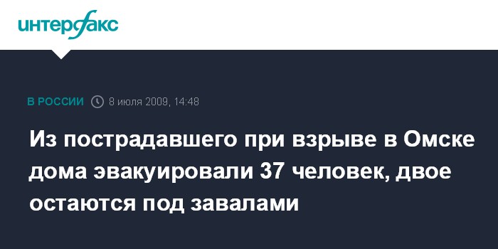 Москва. 8 июля. INTERFAX.RU - По уточненным данным, под завалами пострадавшего при взрыве в Омске жилого дома остаются два человека, сообщили "Интерфаксу" в ГУ МЧС по Омской области.