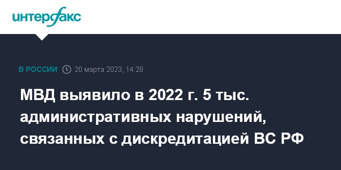 МВД выявило в 2022 г. 5 тыс. административных нарушений, связанных с дискредитацией ВС РФ
