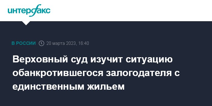 Верховный суд изучит ситуацию обанкротившегося залогодателя с единственным жильем