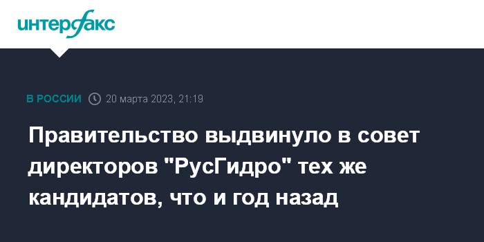 Правительство выдвинуло в совет директоров "РусГидро" тех же кандидатов, что и год назад