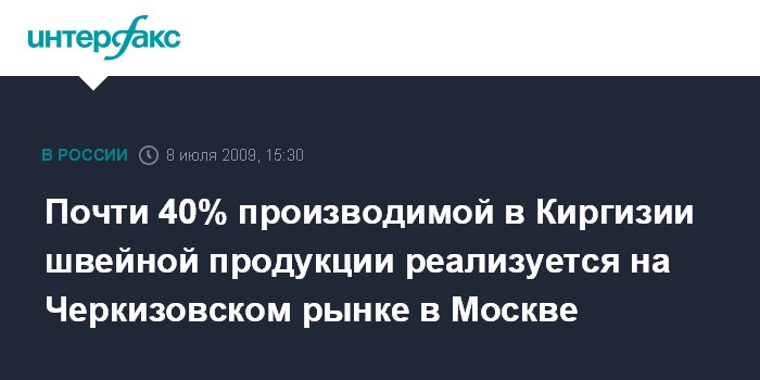 По данным Союза предпринимателей Киргизии, почти 40% производимой в республике продукции легкой промышленности реализуется на Черкизовском рынке.