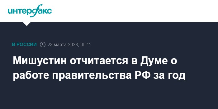 Москва. 23 марта. INTERFAX.RU - Премьер-министр РФ Михаил Мишустин в четверг выступит в Госдуме с отчетом о работе правительства РФ за 2022 год.