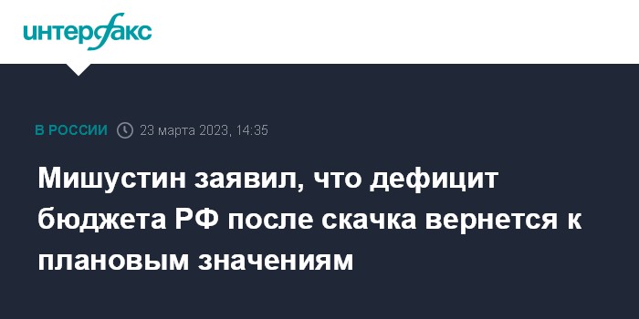 Москва. 23 марта. INTERFAX.RU - Дефицит федерального бюджета РФ после значительного роста в начале 2023 года из-за авансирования контрактов постепенно вернется к плановым значениям, заявил премьер-министр РФ Михаил Мишустин.