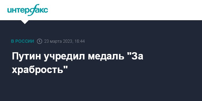 Москва. 23 марта. INTERFAX.RU - Президент РФ Владимир Путин учредил медаль "За храбрость". Соответствующий указ опубликован на официальном портале правовой информации.