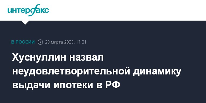 Москва. 23 марта. INTERFAX.RU - Динамика выдачи ипотечных кредитов в РФ неудовлетворительная, заявил в четверг вице-премьер РФ Марат Хуснуллин.