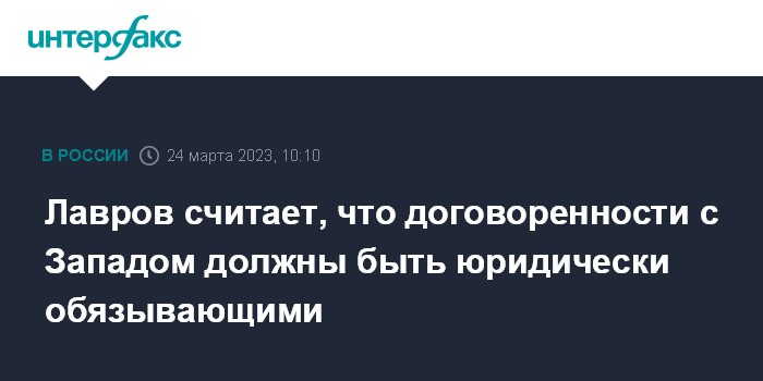 Лавров считает, что договоренности с Западом должны быть юридически обязывающими