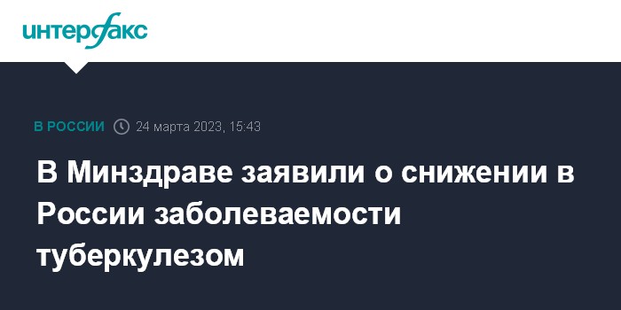 В Минздраве заявили о снижении в России заболеваемости туберкулезом