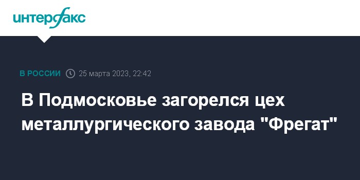 Москва. 25 марта. INTERFAX.RU - Огонь охватил цех металлургического завода "Фрегат" в Воскресенске, сообщили "Интерфаксу" в пресс-службе подмосковного главка МЧС в субботу.