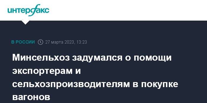 Москва. 27 марта. INTERFAX.RU - Минсельхоз РФ рассматривает возможность оказания господдержки экспортерам и сельхозпроизводителям для покупки вагонов-зерновозов.