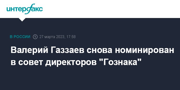 В распоряжении правительства от 27 марта Газзаев предложен в качестве кандидата в новый состав совета директоров "Гознака". Впервые он был избран в совет в 2022 году.