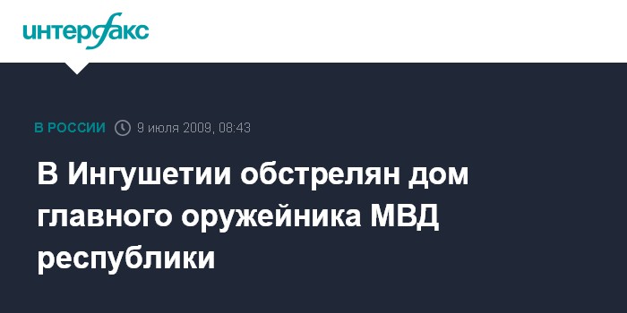 Москва. 9 июля. INTERFAX.RU - Дом начальника отдела вооружений МВД Ингушетии обстрелян в муниципальном округе Альтиево города Назрань в ночь на четверг.