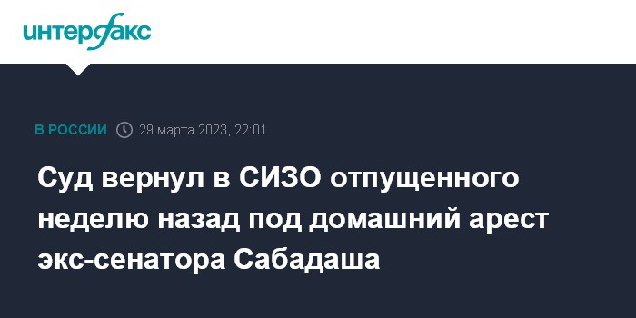 Суд вернул в СИЗО отпущенного неделю назад под домашний арест экс-сенатора Сабадаша