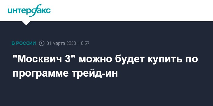 Москва. 31 марта. INTERFAX.RU - Завод "Москвич" запустил акцию на покупку моделей "Москвич 3" по программе трейд-ин, по которой можно получить скидку на покупку нового автомобиля при сдаче старой машины.