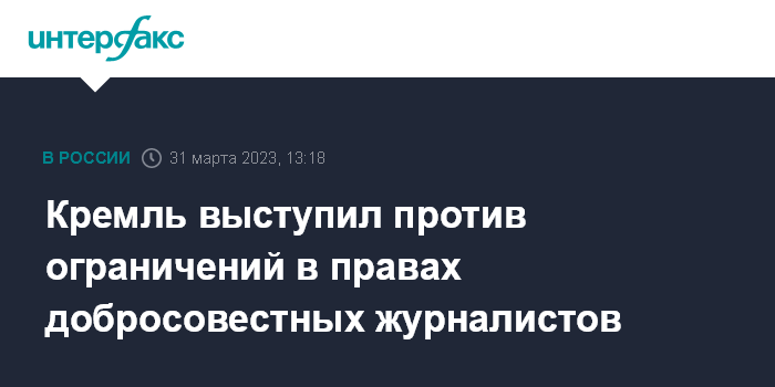 Кремль выступил против ограничений в правах добросовестных журналистов
