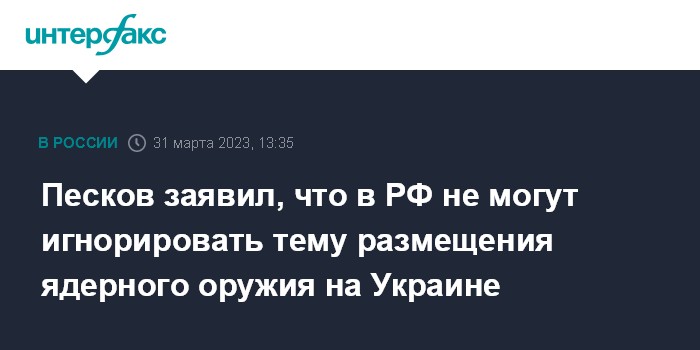 Москва. 31 марта. INTERFAX.RU - Россия не может не обращать внимания на возможность размещения на Украине ядерного оружия, заявил на брифинге пресс-секретарь президента Дмитрий Песков.