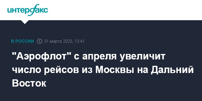 Москва. 31 марта. INTERFAX.RU - "Аэрофлот" с апреля начнет назначать дополнительные рейсы из Москвы в города Дальнего Востока на фоне роста спроса, сообщила пресс-служба группы.