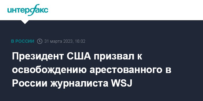 Москва. 31 марта. INTERFAX.RU - Президент США Джо Байден призвал отпустить на свободу журналиста Wall Street Journal Эвана Гершковича, арестованного в России по делу о шпионаже.