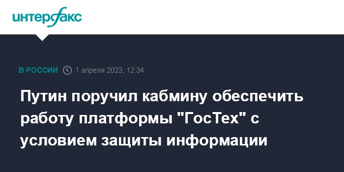 Путин поручил кабмину обеспечить работу платформы "ГосТех" с условием защиты информации