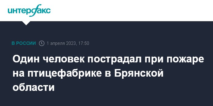 Один человек пострадал при пожаре на птицефабрике в Брянской области