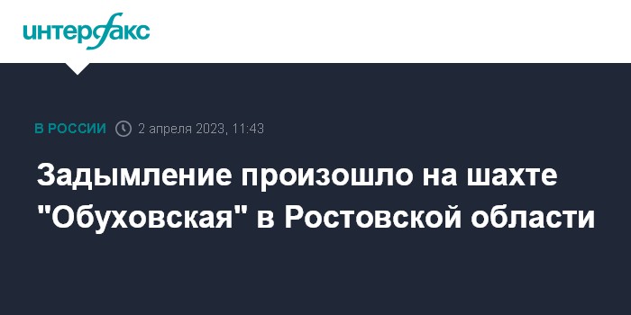 Задымление произошло на шахте "Обуховская" в Ростовской области