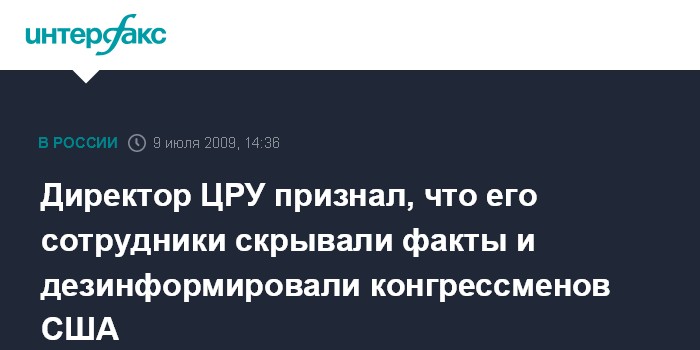 Москва. 9 июля. INTERFAX.RU – Во время своего последнего выступления перед конгрессменами директор ЦРУ Леон Панетта заявил, что сотрудники ЦРУ постоянно скрывали факты и вводили в заблуждение американских законодателей, начиная с 2001 года, говорится в письме, подписанном семью членами палаты представителей конгресса.