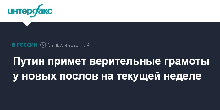 Москва. 3 апреля. INTERFAX.RU - Церемония вручения послами иностранных государств верительных грамот президенту России состоится на этой неделе, заявил пресс-секретарь президента РФ Дмитрий Песков.