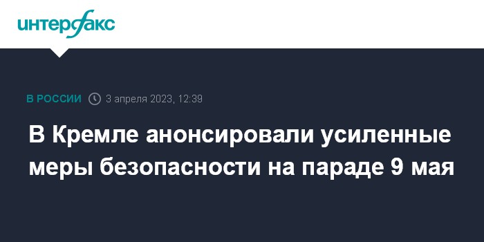Москва. 3 апреля. INTERFAX.RU - Усиленные меры безопасности будут приниматься в связи с военным парадом в День Победы, заявил пресс-секретарь президента Дмитрий Песков.