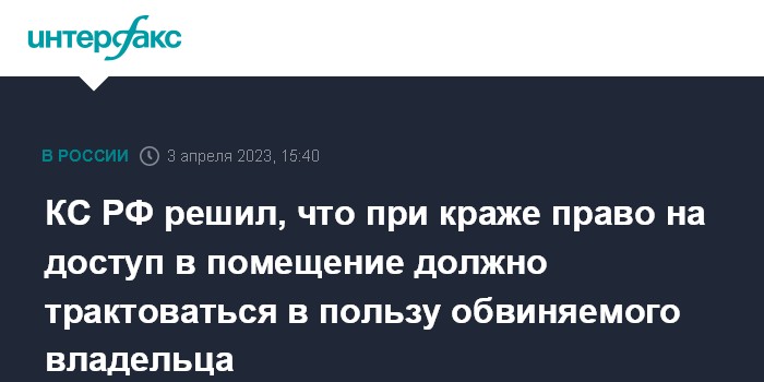 КС РФ решил, что при краже право на доступ в помещение должно трактоваться в пользу обвиняемого владельца