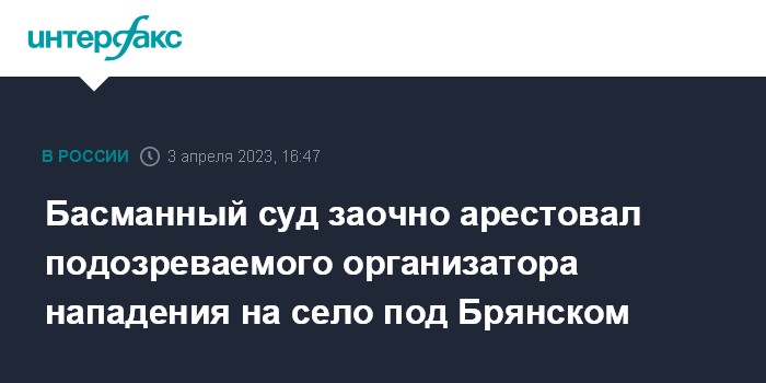 Басманный суд заочно арестовал подозреваемого организатора нападения на село под Брянском