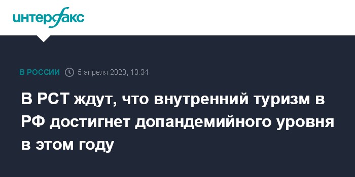 Москва. 5 апреля. INTERFAX.RU - Туристы активно бронируют путешествия по России, ожидается, что в 2023 году внутренний турпоток достигнет рекордного показателя доковидного 2019 года - 65 млн, сообщил вице-президент Российского союза туриндустрии (РСТ) Юрий Барзыкин.