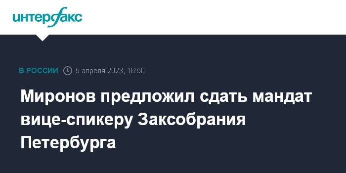 Миронов предложил сдать мандат вице-спикеру Заксобрания Петербурга