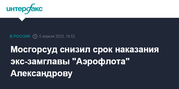 Мосгорсуд снизил срок наказания экс-замглавы "Аэрофлота" Александрову