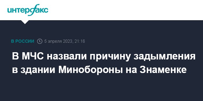 Москва. 5 апреля. INTERFAX.RU - Причиной задымления в здании Минобороны в центре Москвы стало возгорание электробытового прибора, сообщили "Интерфаксу" в пресс-службе столичного главка МЧС.
