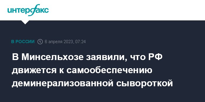 В Минсельхозе заявили, что РФ движется к самообеспечению деминерализованной сывороткой