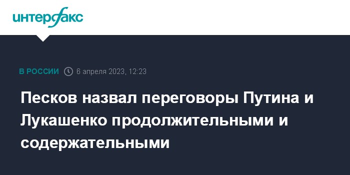Песков назвал переговоры Путина и Лукашенко продолжительными и содержательными