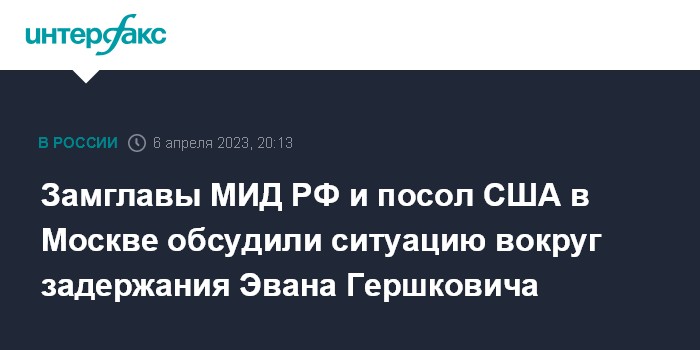 Замглавы МИД РФ и посол США в Москве обсудили ситуацию вокруг задержания Эвана Гершковича